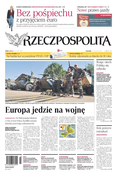 Europa jedzie na wojnę – do Mali pojadą żołnierze z Unii, w tym Polacy, konflikt narasta, islamiści porywają cudzoziemców; decyzję o zwrocie wraku Tu-154 powinny podjąć rosyjskie władze – twierdzi polski rząd; nie będzie kar za pomylenie PESEL i NIP; rodzic odpowiada za dziecko do 18. roku; w lutym ruszy policyjne Centrum Poszukiwań Osób Zaginionych, pracujący w nim eksperci wskażą trop; Rosja chce się promować – planuje festiwal młodzieży jak za czasów ZSRR oraz rozbudowę ośrodków kultury.