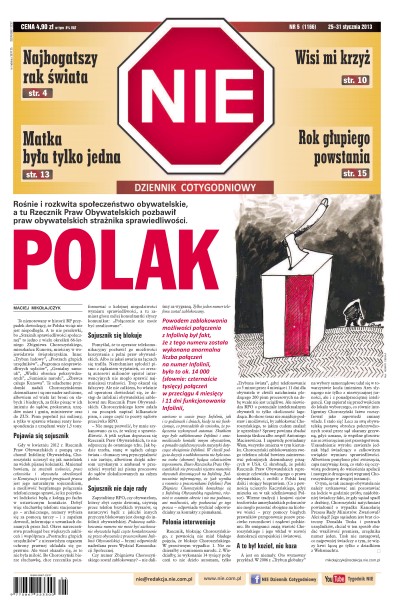 Rośnie i rozkwita społeczeństwo obywatelskie, a tu Rzecznik Praw Obywatelskich pozbawił praw obywatelskich strażnika sprawiedliwości; najbogatszy rak świata – NFZ ma sporo kasy, tylko rozdziela ją pomiędzy cwaniaków; matka była tylko jedna; komu wisi krzyż; rok głupiego powstania; kolekcja sztuki warta 2 mld dolarów nie trafi do Polski – właścicielka się obraziła.