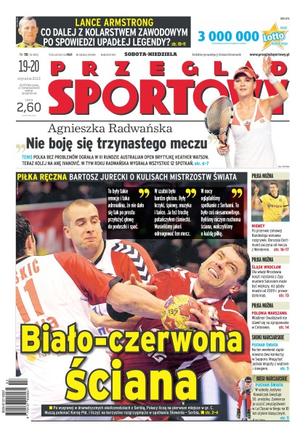 Rozgrywający reprezentacji Polski w meczu z Serbią zdobył jedną bramkę na cztery rzuty i mocno odczuwa już trudy mistrzostw świata; Agnieszka Radwańska zmiotła z kortu Brytyjkę Heather Watson – w niedzielę w czwartej rundzie zmierzy się z Aną Ivanović; Jastrzębski Węgiel wytrzymał próbę nerwów i wywiózł z Olsztyna trzy punkty; słynna dziennikarka Oprah Winfrey pytała, Lance Armstrong odpowiadał – w wywiadzie telewizyjnym przyznał się do wieloletniego stosowania dopingu; reprezentant Polski zagra w barwach Bordeaux w niedzielnym meczu przeciw Paris Saint-Germain.