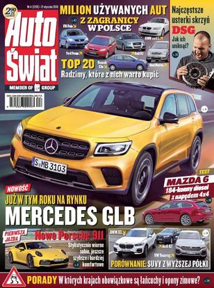 NOWE AUTA: kompaktowe nowości Mercedesa; Toyota Supra; Porsche 911; TESTY: BMW X5 kontra Audi Q7 i VW Touareg; Renault Kadjar; Volvo S90; Seat Arona; Mazda 6; PORADY: dwusprzęgłowe skrzynie biegów; akumulator; autem w góry; AUTA UŻYWANE: Fiat 500X; top 20 - używane z importu; STAŁE POZYCJE: z archiwum „Auto Świata”; absurdy; kronika tygodnia.