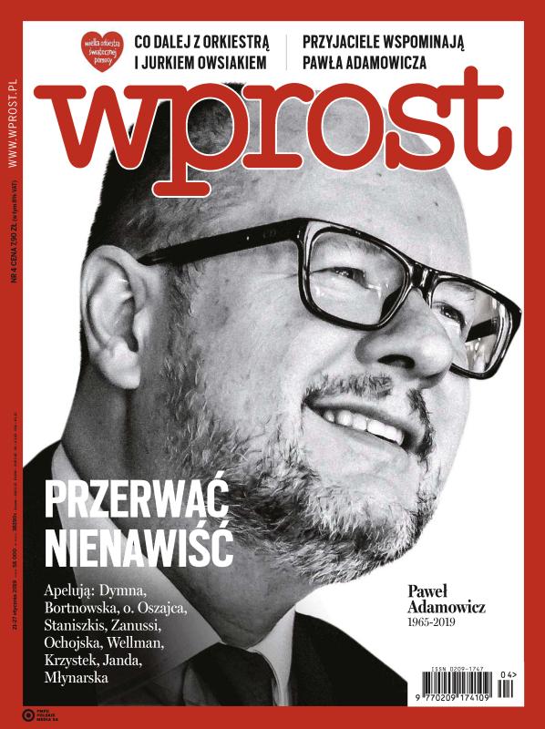 Przyjaciele wspominają Pawła Adamowicza; przerwać nienawiść – apelują znani filozofowie, psycholodzy, działacze społeczni, księża, nauczyciele, artyści; co dalej z Orkiestrą i Jurkiem Owsiakiem; kryzys w PiS; jak rozwodzą się miliarderzy; pił, bił, ale toż to mój syn – przemoc wobec seniorów; Zawsze byliśmy trochę inni – mówi o brexicie Harry Mount, brytyjski pisarz i publicysta; wyobraźnia czasów popkultury – najlepsze teorie spiskowe.