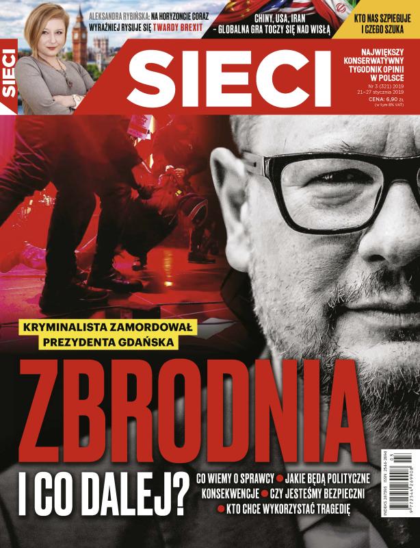Zbrodnia i co dalej? Jakie będą polityczne konsekwencje zabójstwa Pawła Adamowicza; na horyzoncie coraz wyraźniej rysuje się twardy brexit; Chiny, USA, Iran – globalna gra toczy się nad Wisłą; kto nas szpieguje i czego szuka; nigdy nie jest za późno na miłość; PiS nie da się zepchnąć do narożnika – rozmowa z z prof. Waldemarem Paruchem, szefem rządowego Centrum Analiz Strategicznych; „Kogel-mogel”: trzecie utarcie; Irena Dziedzic: kto ją jeszcze pamięta?; rozmowa z Marcinem Chludzińskim, prezesem KGHM Polska Miedź, o nowej strategii polskiego giganta, globalnym rynku surowców i lokalnych podatkach.