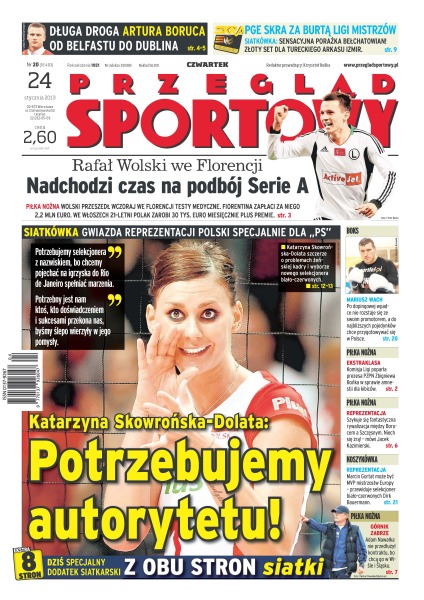 „Potrzebujemy autorytetu!” – Katarzyna Skowrońska-Dolata; długa droga Artura Boruca od Belfastu do Dublina; PGE Skra za burtą Ligi Mistrzów; Rafał Wolski we Florencji – nadchodzi czas na podbój Serie A; Mariusz Wach – po dopingowej wpadce nie rozstaje się ze swoim promotorem, a do najbliższych pojedynków chce przygotowywać się w Polsce; Komisja Ligi poparła prezesa PZPN Zbigniewa Bońka w sprawie amnestii dla kibiców; Marcin Gortat może być MVP mistrzostw Europy – przewiduje selekcjoner biało-czerwonych Dirk Bauermann; Adam Nawałka nie przedłużył kontraktu z Górnikiem Zabrze, bo chcą go w Wiśle i Śląsku.
