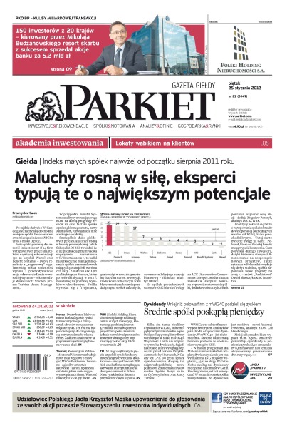 Maluchy rosną w siłę, eksperci typują te o największym potencjale – indeks małych spółek najwyżej od początku sierpnia 2011 roku; średnie spółki poskąpią pieniędzy – mniej niż połowa firm z mWIG40 podzieli się zyskiem; udziałowiec Polskiego Jadła Krzysztof Moska upoważnienie do głosowania ze swoich akcji przekaże Stowarzyszeniu Inwestorów Indywidualnych; 150 inwestorów z 20 krajów – kierowany przez Mikołaja Budzanowskiego resort skarbu z sukcesem sprzedał akcje banku za 5,2 mld zł; dystrybutor leków, Neuca, pomimo kurczącego się rynku farmaceutycznego i mniejszych obrotów notuje coraz większe zyski.