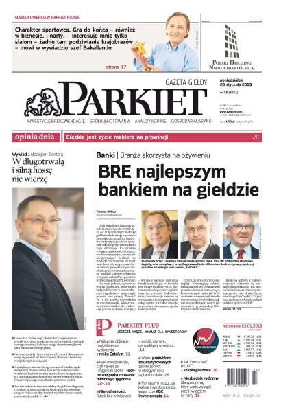 Największy w Polsce newsroom gospodarczy zbiera, analizuje i zgłębia dla Państwa najważniejsze informacje ze świata finansów. Codzienne wydanie „Parkietu”, sześć dni w tygodniu, to kilkadziesiąt artykułów o emitentach, instytucjach finansowych, gospodarce. To również opinie, felietony i wywiady z najważniejszymi ludźmi krajowej i globalnej finansjery.