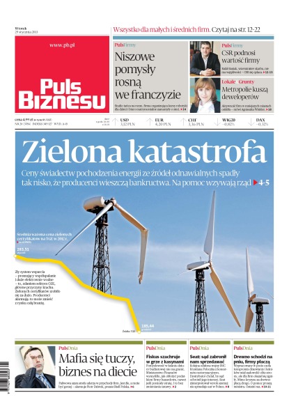 Niszowe pomysły rosną we franczyzie; ceny świadectw pochodzenia energii ze źródeł odnawialnych spadły tak nisko, że producenci wieszczą bankructwa – na pomoc wzywają rząd; pomysłowość w łataniu dziury budżetowej nie ma granic – Ministerstwo Finansów wymyśliło, jak obłożyć podatkiem firmy hazardowe, nawet jeśli poniosły stratę; kolejna odsłona wojny IMC Krystiana Poloczka z koncernem motoryzacyjnym; wypracowany w pocie czoła kompromis drzewiarzy i leśników miał zadowolić obie strony, ale dla firm okazał się zgniły.