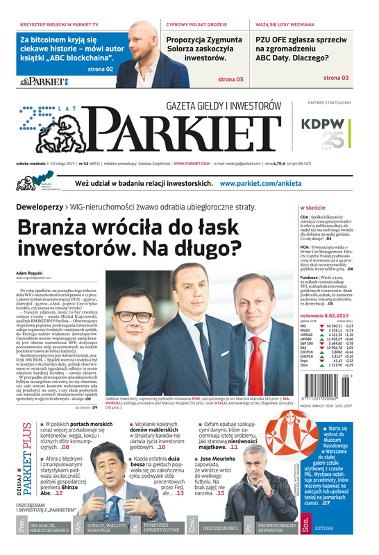 Największy w Polsce newsroom gospodarczy zbiera, analizuje i zgłębia dla Państwa najważniejsze informacje ze świata finansów. Codzienne wydanie „Parkietu”, sześć dni w tygodniu, to kilkadziesiąt artykułów o emitentach, instytucjach finansowych, gospodarce. To również opinie, felietony i wywiady z najważniejszymi ludźmi krajowej i globalnej finansjery.