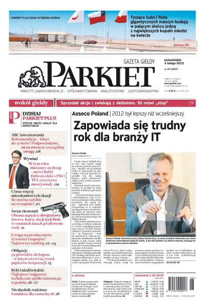 Gazeta Giełdy i Inwestorów Parkiet przyspiesza publikację e-wydania. Od poniedziałku, już od godz. 20.00, można kupić i przeczytać e-wydanie Parkietu, które w wersji papierowej ukaże się dopiero następnego dnia. Parkiet jest więc najświeższą gazetą finansową w Polsce.