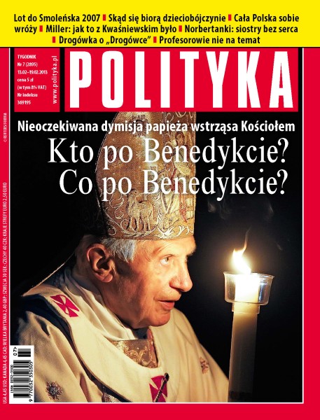 Benedykt XVI podjął decyzję o abdykacji; jak za rządów PiS dbano o bezpieczeństwo Lecha Kaczyńskiego; dlaczego Polacy są dla siebie okrutni; czy można nie kochać dziecka; z czym Polacy dzwonią do wróżki; rozmowa z Leszkiem Millerem o Lwie Rywinie, Adamie Michniku i Aleksandrze Kwaśniewskim; romanse, zdrady i donosy – czyli śmierć Aleksandra Puszkina; ranking polskich galerii sztuki współczesnej; rozmowa z Jackiem Zalewskim, byłym szefem stołecznego wydziału ruchu drogowego o realnej fikcji „Drogówki” Wojciecha Smarzowskiego.