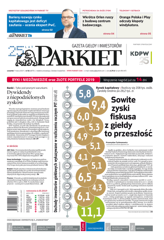 Największy w Polsce newsroom gospodarczy zbiera, analizuje i zgłębia dla Państwa najważniejsze informacje ze świata finansów. Codzienne wydanie „Parkietu”, sześć dni w tygodniu, to kilkadziesiąt artykułów o emitentach, instytucjach finansowych, gospodarce. To również opinie, felietony i wywiady z najważniejszymi ludźmi krajowej i globalnej finansjery.