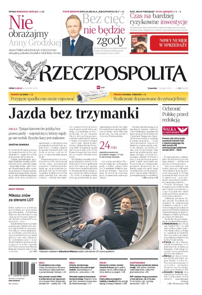 Tysiące kierowców jeżdżą bez prawa jazdy – najczęściej ci, którzy nigdy go nie zrobili, ryzyko kary jest znikome; przyjęcie spadku nie może rujnować; rozliczenie dopasowane do sytuacji firmy; Mikosz znów za sterami LOT; były premier Leszek Miller w prokuraturze nie zaprzeczył, że na terenie Polski działał tajny ośrodek CIA; półmetek kadencji Bronisława Komorowskiego; niemiecka minister oświaty Annette Schavan grozi sądem, żądając zwrotu odebranego jej tytułu doktora za plagiat.