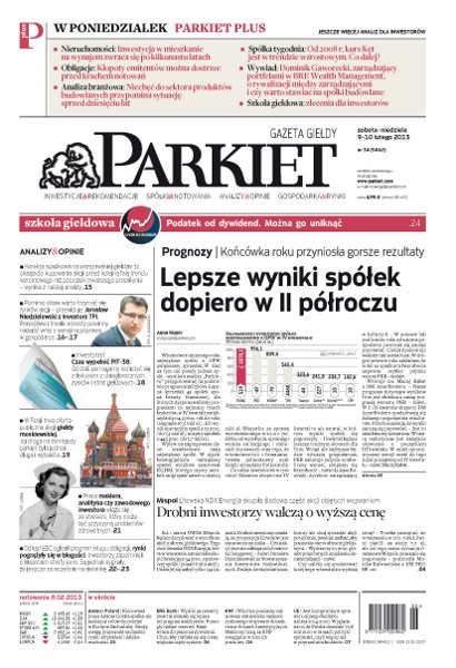 Końcówka roku przyniosła gorsze rezultaty – lepsze wyniki spółek dopiero w II półroczu; korekta spadkowa na warszawskiej giełdzie to okazja do kupowania akcji; pomimo obaw warto trzymać się rynków akcji – przewiduje Jarosław Niedzielewski z Investors TFI; czas wypełnić PIT-38 – jak rozliczyć się z fiskusem z ubiegłorocznych zysków i strat giełdowych; w Rosji trwa oferta publiczna akcji giełdy moskiewskiej; praca maklera, analityka czy zawodowego inwestora wiąże się ze stresem, który może być przyczyną problemów zdrowotnych; odkąd EBC ogłosił program skupu obligacji, rynki pogrążyły się w błogości, za wcześnie jednak na sielankę; walka o Mispol – drobni inwestorzy kontra Litwini.