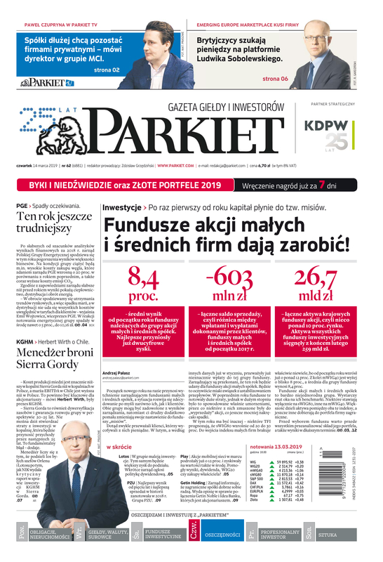 Największy w Polsce newsroom gospodarczy zbiera, analizuje i zgłębia dla Państwa najważniejsze informacje ze świata finansów. Codzienne wydanie „Parkietu”, sześć dni w tygodniu, to kilkadziesiąt artykułów o emitentach, instytucjach finansowych, gospodarce. To również opinie, felietony i wywiady z najważniejszymi ludźmi krajowej i globalnej finansjery.