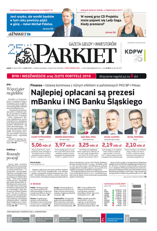 Największy w Polsce newsroom gospodarczy zbiera, analizuje i zgłębia dla Państwa najważniejsze informacje ze świata finansów. Codzienne wydanie „Parkietu”, sześć dni w tygodniu, to kilkadziesiąt artykułów o emitentach, instytucjach finansowych, gospodarce. To również opinie, felietony i wywiady z najważniejszymi ludźmi krajowej i globalnej finansjery.