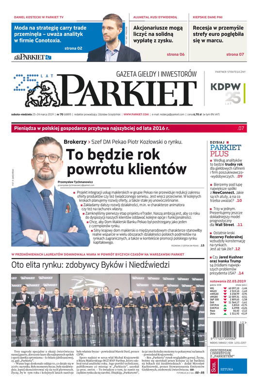 Największy w Polsce newsroom gospodarczy zbiera, analizuje i zgłębia dla Państwa najważniejsze informacje ze świata finansów. Codzienne wydanie „Parkietu”, sześć dni w tygodniu, to kilkadziesiąt artykułów o emitentach, instytucjach finansowych, gospodarce. To również opinie, felietony i wywiady z najważniejszymi ludźmi krajowej i globalnej finansjery.