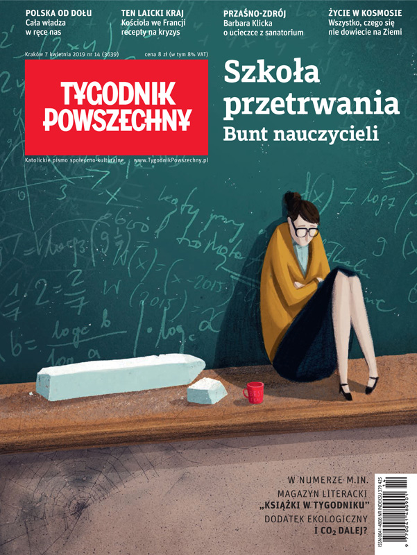 Dyskusji o nauczycielskich zarobkach nie da się prowadzić na poważnie w oderwaniu od pytania: kim ma być nauczyciel i czego od niego oczekujemy; lekarstwem na polską polaryzację jest decentralizacja – twierdzą profesorowie Antoni Dudek i Maciej Kisilowski; jak przetrwać kryzys Kościoła; rewolucja przeciw skorumpowanemu lewicowemu reżimowi w Nikaragui; stacje orbitalne są astronomicznie drogie i nie doprowadziły do żadnego spektakularnego odkrycia, ale trudno sobie wyobrazić, byśmy mogli z nich zrezygnować. Dodatek: magazyn literacki „Książki w Tygodniku”.