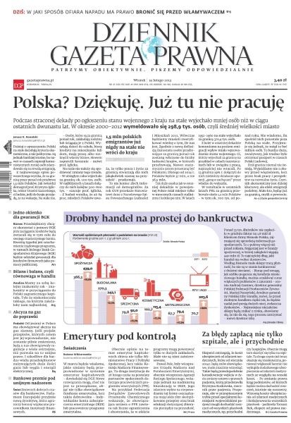 Dziennik Gazeta Prawna – codziennie obiektywne i rzetelne informacje z kraju i ze świata. Piszemy o tym, co dziś ważne i odpowiadamy na Wasze pytania – szczególnie te związane z obecnymi wyzwaniami tj. pandemia, praca zdalna. Na bieżąco wyjaśniamy zmieniające się przepisy. Wspieramy się wyjaśnieniami ministerstw i urzędów. Pomagamy unikać błędów i ostrzegamy, jakie są kary. Ponadto w każdy piątek specjalne magazynowe wydanie Dziennika Gazety Prawnej w całości z tekstami społeczno-ekonomicznymi.
