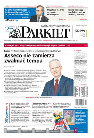 Największy w Polsce newsroom gospodarczy zbiera, analizuje i zgłębia dla Państwa najważniejsze informacje ze świata finansów. Codzienne wydanie „Parkietu”, sześć dni w tygodniu, to kilkadziesiąt artykułów o emitentach, instytucjach finansowych, gospodarce. To również opinie, felietony i wywiady z najważniejszymi ludźmi krajowej i globalnej finansjery.