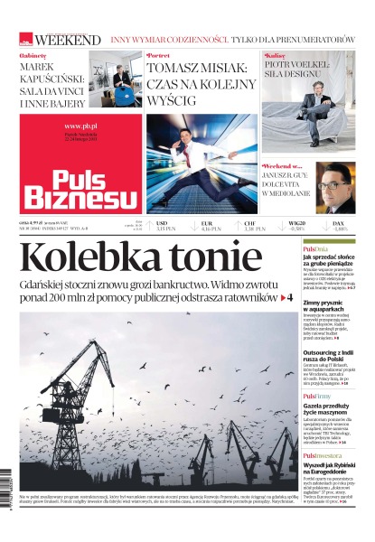Gdańskiej stoczni znowu grozi bankructwo. Widmo zwrotu ponad 200 mln zł pomocy publicznej odstrasza ratowników; wysokie wsparcie przewidziane dla fotowoltaiki w projekcie ustawy o OZE elektryzuje inwestorów; inwestycje w centra wodnej rozrywki przysparzają samorządom kłopotów; centrum usług IT Birlasoft, które będzie realizować projekt we Wrocławiu, zatrudni 60 osób; laboratorium pomiarów dla specjalistycznych wrzecion i urządzeń, które zamierza uruchomić TBI Technology, będzie jedynym takim ośrodkiem w Polsce; portfel oparty na pesymistycznych założeniach po roku przyniósł polskiemu „doktorowi zagładzie” 37 proc. straty.