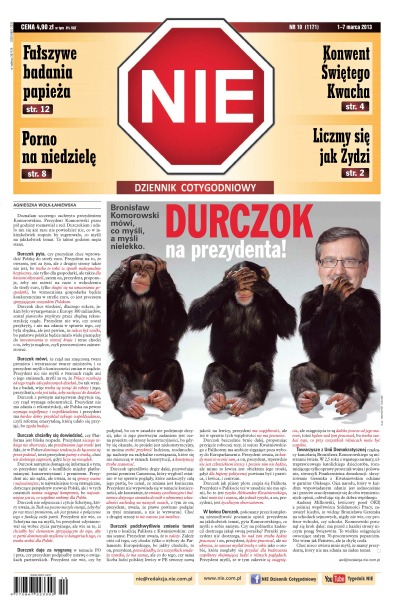 Bronisław Komorowski mówi, co myśli, a myśli nielekko; Ministerstwo Administracji i Cyfryzacji ma pomysł jak z Gierka; człowiek, który chciałby być jak Andrzej Lepper, tylko nie ma odwagi; dlaczego bezsensownie zaostrzone prawo hazardowe upodabnia Polskę do zaścianka; podręczniki szkolne przekazują obsesje autorów; zakonnice dostały od państwa 10 razy więcej, niż miały – i czują się pokrzywdzone.