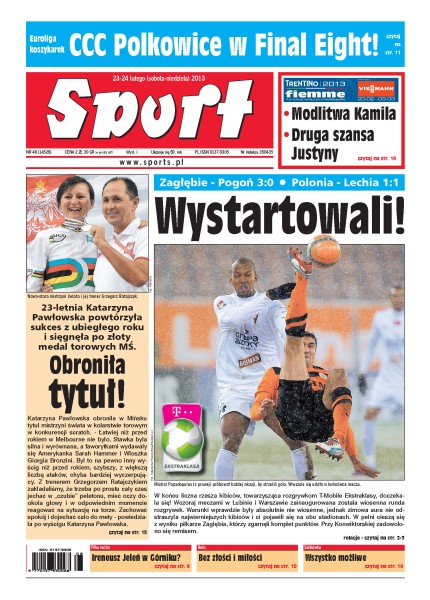 Katarzyna Pawłowska obroniła w Mińsku tytuł mistrzyni świata w kolarstwie torowym w konkurencji scratch; Zagłębie Lubin pokonało Pogoń Szczecin 3:0; Mario Balotelli w każdym meczu Milanu strzela bramki – czy uda mu się to także w derbach z Interem; Jupp Heynecks zaliczy dziś swój 1000 mecz w Bundeslidze.
