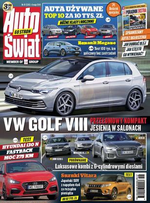 Volkswagen Golf VIII – ujawniamy wygląd i pakiet informacji na temat nowej generacji króla kompaktów; Mercedes klasy V – pierwsza jazda wersją po face liftingu; Audi A6, BMW serii 5, Mercedes klasy E – porównanie trzech luksusowych kombi wyposażonych w mocne diesle; Ford Tourneo Connect – Praktyczna wersja rodzinna z silnikiem 1.5 EcoBlue; Hyundai i30 N fastback – kompaktowy hot hatch z benzyniakiem o mocy 275 KM; Volvo V60 Cross Country – 190 KM, 4x4, komfort i uniwersalny charakter; Aktywne zawieszenia – przegląd dostępnych rozwiązań, eksploatacja, wady, zalety, serwisowanie.