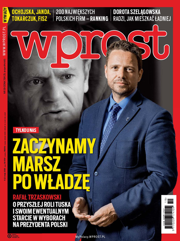 Rafał Trzaskowski o przyszłej roli Tuska i swoim ewentualnym starcie w wyborach na prezydenta Polski; ranking 200 największych polskich firm; Janina Ochojska walczy o życie i europarlament; jak nauczyciele zmobilizowali PiS; Olga Tokarczuk: Polska nie jest pępkiem świata; Dorota Szelągowska radzi, jak mieszkać ładniej.