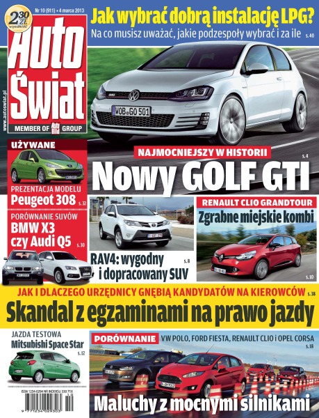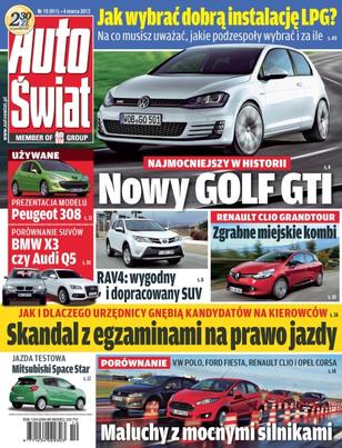 Prezentacje, jazdy testowe, aktualności: VW Golf GTI, Toyota RAV4, Renault Clio Grandtour i RS, Mitsubishi Space Star, Opel Zafira Tourer, Fiat 500L; sport: Kia Lotos Race, elektryczny Nissan w Le Mans; testy i porównania: Ford Fiesta, Opel Corsa, Renault Clio i VW Polo, Mazda 6, Fiat Sedici, Citroën C-Elysée; używane: Audi Q5 kontra BMW X3, Peugeot 308 (od 2007 r.); porady: prawo jazdy po nowemu, instalacje LPG, zabezpieczenie spodu auta; auto-fascynacje: VW Crafter 4Motion kontra Yamaha Grizzly 700; pozostałe pozycje: czarne chmury nad fotoradarami.