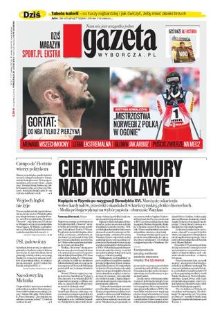 Napięcie w Rzymie po rezygnacji Benedykta XVI – mnożą się oskarżenia wobec kandydatów, przecieki o skandalach w kurii rzymskiej i plotki o hierarchach; grupa młodych zamaskowanych mężczyzn próbowała przerwać wykład Adama Michnika; mocarstwa walczą dziś ze sobą za pomocą wojen walutowych; gdzie lokować pieniądze, gdy oprocentowanie lokat bankowych spada.