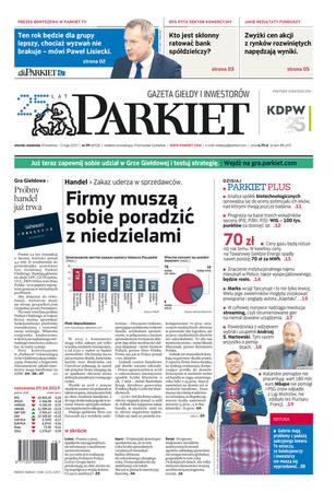 Największy w Polsce newsroom gospodarczy zbiera, analizuje i zgłębia dla Państwa najważniejsze informacje ze świata finansów. Codzienne wydanie „Parkietu”, sześć dni w tygodniu, to kilkadziesiąt artykułów o emitentach, instytucjach finansowych, gospodarce. To również opinie, felietony i wywiady z najważniejszymi ludźmi krajowej i globalnej finansjery.