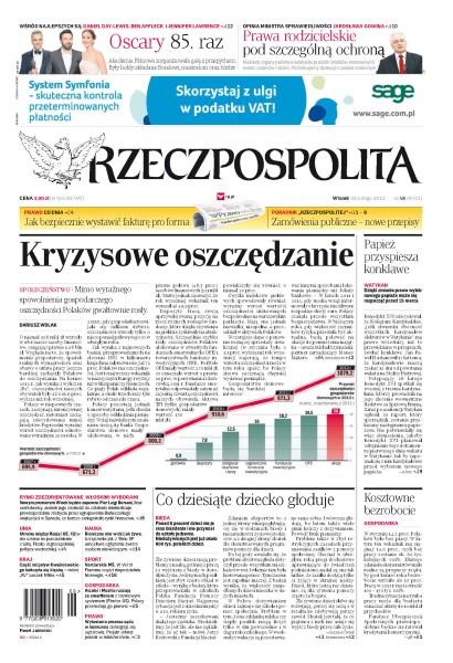 Mimo wyraźnego spowolnienia gospodarczego oszczędności Polaków gwałtownie rosły; dzięki zmianie prawa wybór nowego papieża może się rozpocząć przed 15 marca; w Polsce niedożywionych jest ok 800 tys. dzieci; w obliczu rozłamu w PO koalicjanci rozważają różne scenariusze – z wcześniejszymi wyborami włącznie.
