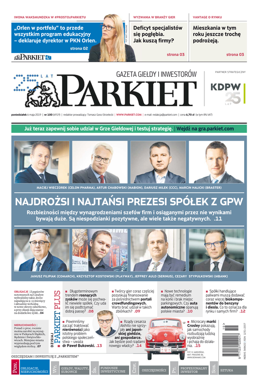Największy w Polsce newsroom gospodarczy zbiera, analizuje i zgłębia dla Państwa najważniejsze informacje ze świata finansów. Codzienne wydanie „Parkietu”, sześć dni w tygodniu, to kilkadziesiąt artykułów o emitentach, instytucjach finansowych, gospodarce. To również opinie, felietony i wywiady z najważniejszymi ludźmi krajowej i globalnej finansjery.
