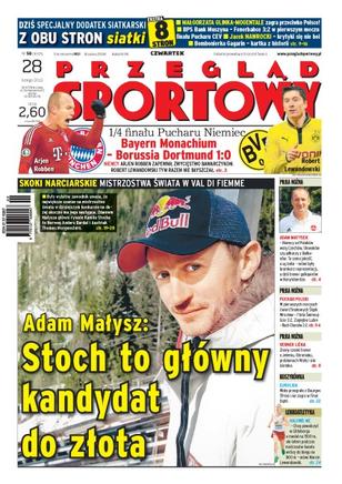 Borussia Dortmund odpadła z Pucharu Niemiec przegrywając z Bayernem Monachium; zdaniem Adama Małysza największe szanse na wygraną na dużej skoczni w Predazzo ma Kamil Stoch, a jego główni rywale to Norweg Anders Bardal i Austriak Thomas Morgenstern; rozmowa z byłym bramkarzem reprezentacji Polski w piłce nożnej Adamem Matyskiem.