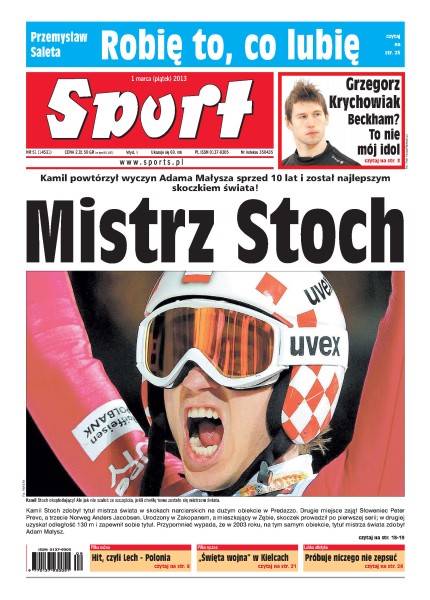 Kamil Stoch został mistrzem świata na dużej skoczni w Predazzo; żadnych rozmów z Borussią w sprawie Lewandowskiego – taka ma być letnia polityka transferowa Bayernu w sprawie Polaków; trener Skry Częstochowa, Jan Woś, jest przekonany, że 36-letni Jean Paulista podniesie jakość gry jego zespołu.