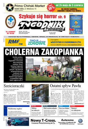 Tygodnik Podhalański to niezależne pismo regionalne – ukazuje się już od 1989 roku na terenie Podhala, Orawy, Spisza i Pienin. Od ponad dziesięciu lat dostępne jest także w Chicago i Toronto. Na jego łamach publikowane są aktualne informacje z regionu.