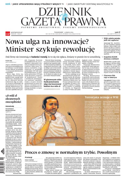Dziennik Gazeta Prawna – codziennie obiektywne i rzetelne informacje z kraju i ze świata. Piszemy o tym, co dziś ważne i odpowiadamy na Wasze pytania – szczególnie te związane z obecnymi wyzwaniami tj. pandemia, praca zdalna. Na bieżąco wyjaśniamy zmieniające się przepisy. Wspieramy się wyjaśnieniami ministerstw i urzędów. Pomagamy unikać błędów i ostrzegamy, jakie są kary. Ponadto w każdy piątek specjalne magazynowe wydanie Dziennika Gazety Prawnej w całości z tekstami społeczno-ekonomicznymi.