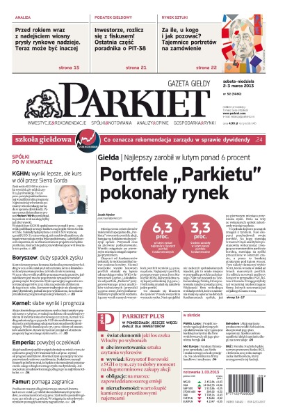 Przed rokiem wraz z nadejściem wiosny prysły rynkowe nadzieje – teraz może być inaczej; inwestorze, rozlicz się z fiskusem – ostatnia część poradnika o PIT-38; za ile, u kogo i jak pozować tajemnice portretów na zamówienie; giełda – najlepszy zarobił w lutym ponad 6 procent; co oznacza rekomendacja zarządu w sprawie dywidendy; KGHM: wyniki lepsze, ale kurs w dół przez Sierra Gorda.