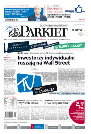Gazeta Giełdy i Inwestorów Parkiet przyspiesza publikację e-wydania. Od poniedziałku, już od godz. 20.00, można kupić i przeczytać e-wydanie Parkietu, które w wersji papierowej ukaże się dopiero następnego dnia. Parkiet jest więc najświeższą gazetą finansową w Polsce.