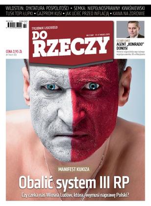 Paweł Kukiz chce budzić społeczeństwo i walczyć o jednomandatowe okręgi wyborcze; działacze PiS znów zaczęli wierzyć, że jeszcze dojdą do władzy; rozmowa z Mariuszem Błaszczakiem, przewodniczącym Klubu Parlamentarnego PiS; niewierzący zakonnik był agentem komunistycznych służb w Stolicy Apostolskiej; marnujemy historyczną szansę, bo wciąż nie ma ustawy regulującej wydobycie gazu łupkowego.