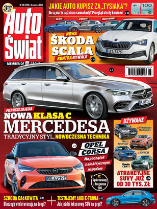 Ile są warte najtańsze samochody - przegląd oferty komisów; nowa Škoda Scala kontra rywale; atrakcyjne SUVy już od 30 tys. zł; Opel Corsa z elektrycznym napędem; Audi e-tron: jak jeździ luksusowy SUV na prąd; nowa klasa C Mercedesa; dlaczego wraki wracają na drogi; dodatek ekstra - testy produktów, porady, serwis, prawo.