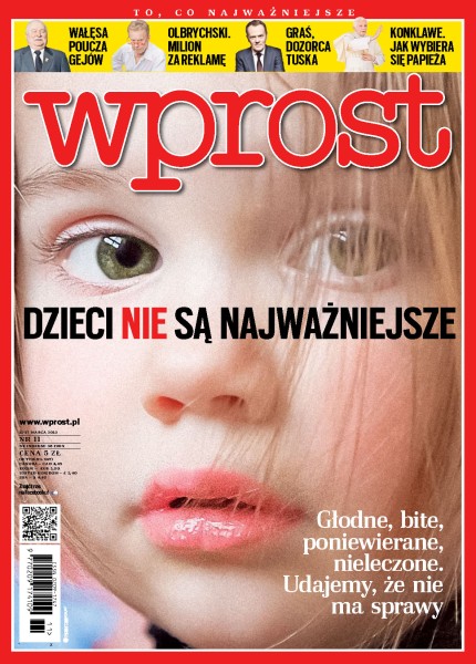 Lech Wałęsa protestuje przeciwko wszechobecnemu mówieniu o rzeczach, które nie stanowią istoty sprawy; rozmowa z aktorem Danielem Olbrychskim; po ostatnim przemeblowaniu w PO Paweł Graś został numerem jeden w kancelarii premiera; dzieci w Polsce są głodzone, bite, poniewierane, nieleczone a także zabijane przez rodziców własnych lub zastępczych – państwa sobie z tym nie radzi, media gonią za sensacją, a społeczeństwo udaje, że nie ma sprawy; porucznik Piotr Maciejczyk-Cień, bohater wojny w Afganistanie, stanął przed sądem – do dziś czeka na najwyższe odznaczenie za dowodzenie akcją, która uratowała życie żołnierzom.