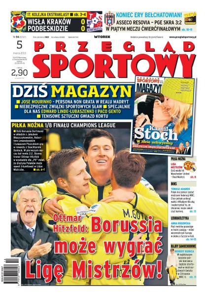 Dziś Borussia Dortmund w składzie z Jakubem Błaszczykowskim, Robertem Lewandowskim i Łukaszem Piszczkiem gra w rewanżu z Szachtarem Donieck; dziś wielki hit Manchester United – Real Madryt; Tomasz Adamek ma zamiar zostać mistrzem federacji WBC, chce jednak uniknąć walki z Witalijem Kliczką i wykorzystać to, że Ukrainiec może zakończyć karierę; w najbliższym sezonie Robert Kubica będzie starto-wał w mistrzostwach świata w Citroenie WRC II.