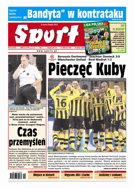 Po godzinie gry Manchester miał wszystko pod kontrolą, ale wtedy fatalnie pomylił się sędzia Cuneyt Cakir; mistrzowie Niemiec nie mieli żadnych problemów, by postawić do kąta drużynę Szachtara; trener Dominik Nowak nie boi się konkurentów, ale jednocześnie zapewnia, że jego drużynie wiosną nie grozi samouspokojenie; Violetta Bakoś Trenerką Roku, specjalne wyróżnienie dla profesor zofii Żukowskiej.