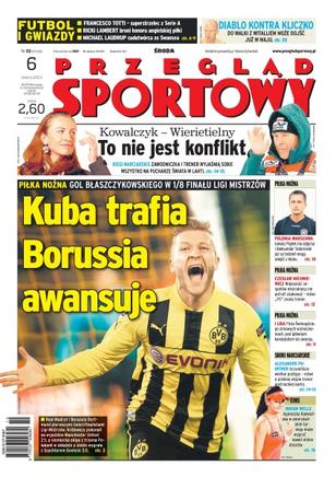 Diablo kontra Kliczko – do walki z Witalijem może dojść już w maju; Kowalczyk i Wierietielny – zawodniczka i trener wyjaśnią sobie wszystko na pucharze świata w Lahti; Real Madryt i Borussia Dortmund pierwszymi ćwierćfinalistami Ligi Mistrzów; Agnieszka Radwańska w amerykańskim turnieju może wygrać nawet milion dolarów; I Liga – Flota Świnoujście, po zimowych wzmocnieniach, jest głównym kandydatem do awansu.