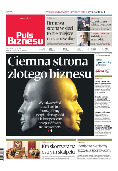 Wyłudzacze VAT skazili kolejną branżę. Firmy cierpią, ale na gorzki lek, który chce im przepisać fiskus, nie mają ochoty; firmowa strona w sieci to nie miejsce na samowolkę; Gazele Biznesu uciekają do przodu ; rodzi się wizja intermodalu – należy go promować jako ekologiczny transport; skarb chroni KSC przed inwestorami.