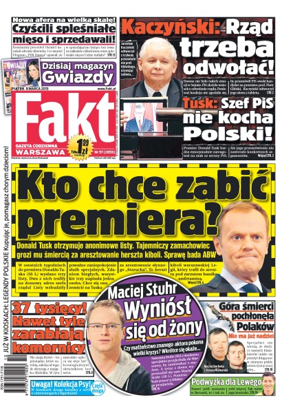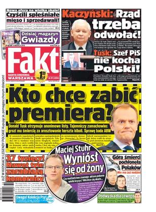 Jarosław Kaczyński odtworzył z trybuny przemówienie prof. Glińskiego, używając tabletu; nowa afera na wielką skalę – czyścili spleśniałe mięso i sprzedawali; Donald Tusk otrzymuje anonimowe listy – tajemniczy zamachowiec grozi mu śmiercią za aresztowanie herszta kiboli; Maciej Stuhr wyniósł się od żony; Maciej Berbeka i Tomasz Kowalski – dla polskich alpinistów nie ma już nadziei.