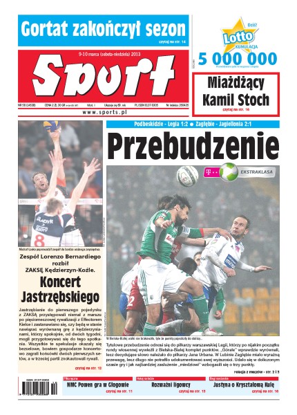 Po raz drugi z rzędu w doliczonym czasie gry piłkarze Zagłębia Lubin odmienili losy spotkania – tym razem z Jagiellonią Białystok; potencjał piłkarskich „armii” Ruchu Chorzów i Śląska Wrocław wydaje się identyczny, więc o losach dzisiejszej bitwy mogą zadecydować liderzy: Filip Starzyński i Sebastian Mila; po raz 142. zagrają między sobą Schalke 04 i Borussia Dortmund – to najważniejsze derby w Niemczech.