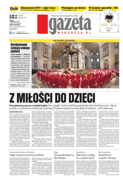 Z miłości do dzieci – precedensowy proces o handel ludźmi – para „kupiła” od obywateli Rumunii dziecko, które chcieli porzucić; abonament RTV – ulgi i kary Kto jest zwolniony z opłat – kary dla dłużników; pieniądze na dzieci – dla kogo zasiłki; nagrywanie na życzenie studenta – kontrowersyjny pomysł we Wrocławiu – Samorząd Studentów Uniwersytetu Wrocławskiego chce, by zaliczenia były rejestrowane przez kamery; nie ma alternatywy dla Orbana; Barcelona ocalała, i to w jakim stylu – piłkarze z Katalonii rozbili 4-0 Milan, któremu we Włoszech sensacyjnie ulegli 0-2; Kamil Stoch wygrał w Kuopio – o zwycięstwie polskiego mistrza świata zadecydował świetny pierwszy skok.
