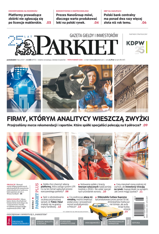 Największy w Polsce newsroom gospodarczy zbiera, analizuje i zgłębia dla Państwa najważniejsze informacje ze świata finansów. Codzienne wydanie „Parkietu”, sześć dni w tygodniu, to kilkadziesiąt artykułów o emitentach, instytucjach finansowych, gospodarce. To również opinie, felietony i wywiady z najważniejszymi ludźmi krajowej i globalnej finansjery.