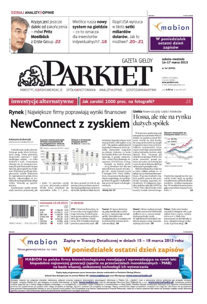 Gazeta Giełdy i Inwestorów Parkiet przyspiesza publikację e-wydania. Od poniedziałku, już od godz. 20.00, można kupić i przeczytać e-wydanie Parkietu, które w wersji papierowej ukaże się dopiero następnego dnia. Parkiet jest więc najświeższą gazetą finansową w Polsce.
